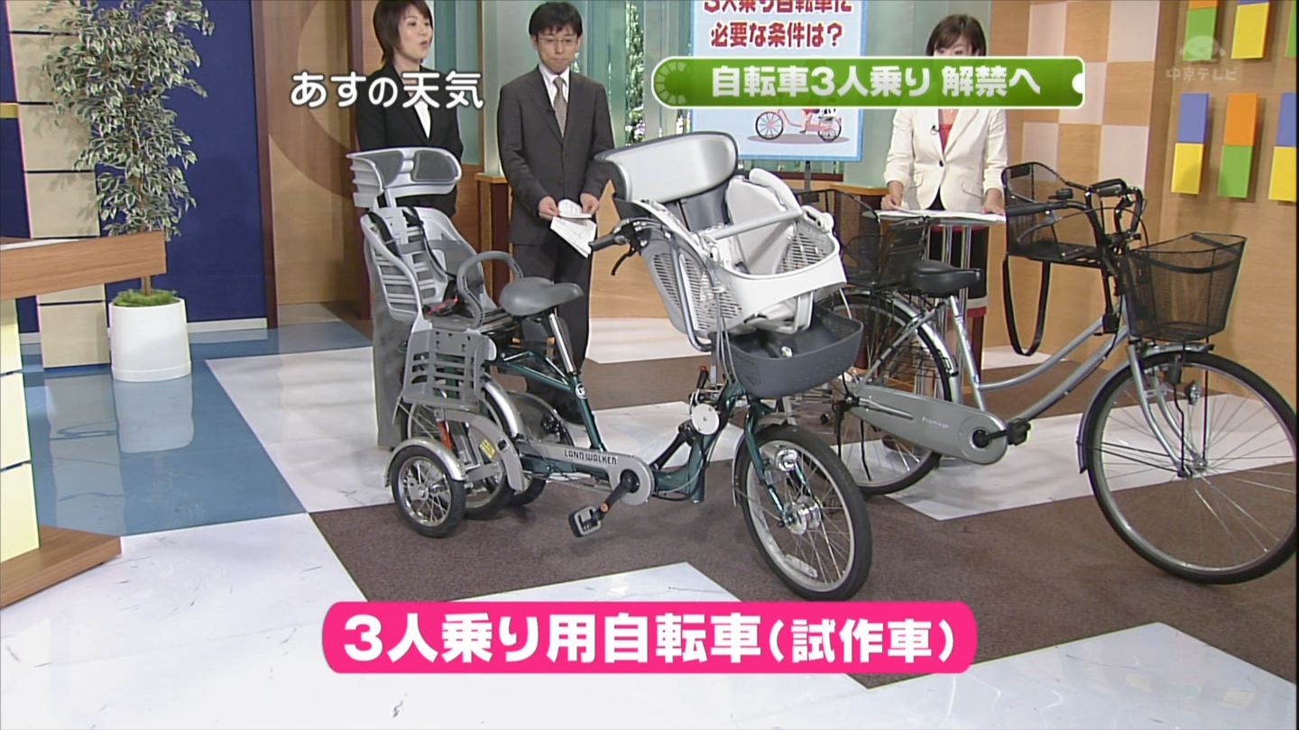 中京テレビで3人乗り自転車解禁のニュース。