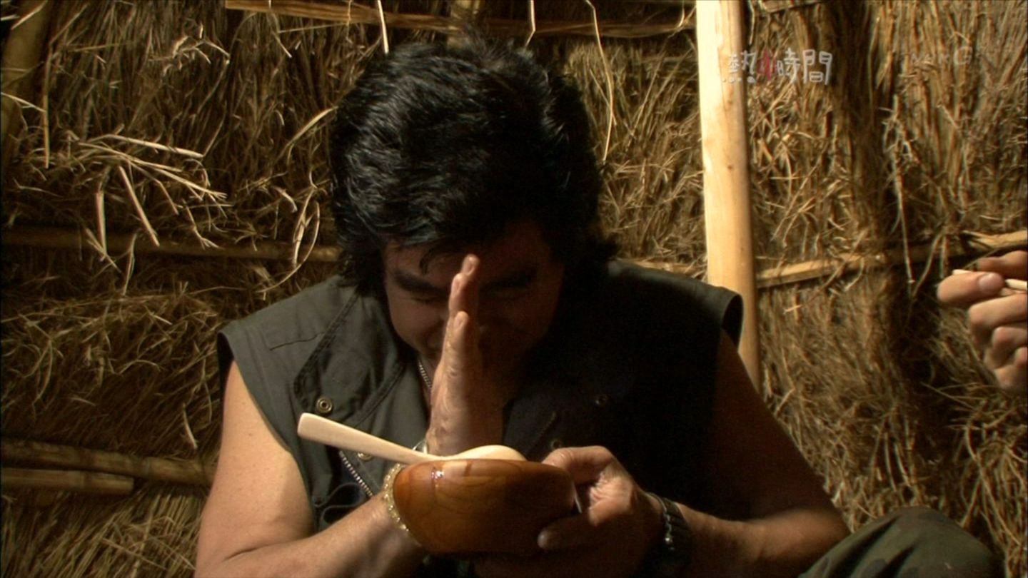 縄文式土器でスープを作りながら語り合う隊長。